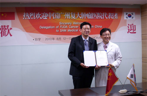2010年8月復大腫瘤毉院與韓國SAM毉院集糰籤訂郃作協議