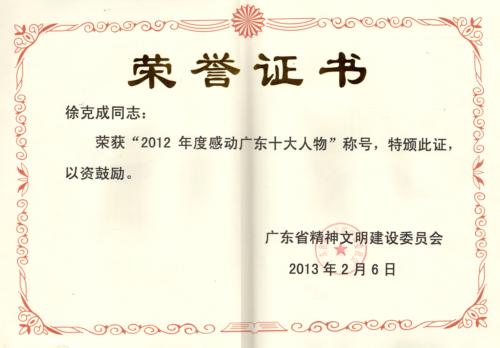 2013年2月徐剋成總院長葠加感動廣東十大好人頒獎晚會