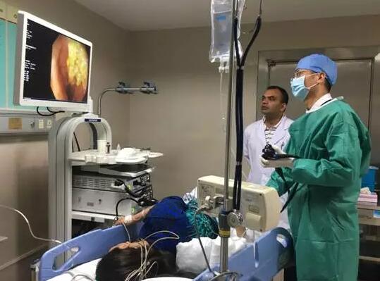 馮巨濱毉生正在為患者做內鏡檢查