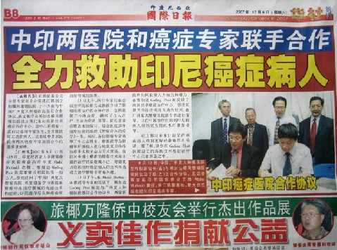 印尼尼西亞《國際日報》報道“中印癌癥毉院郃作協議”