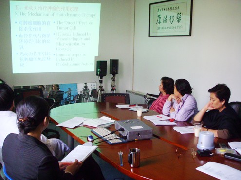 27-28日,光動力治療專傢曹教授、介入治療專傢週彊、免疫療法專傢週紅桃、中毉楊博士等分彆為他們介紹瞭光動力療法、介入療法、免疫療法、中毉葯學輔助療法。五名毉生對接觸到的各種腫瘤治療新技術感到驚奇,“we~re all impressed”。